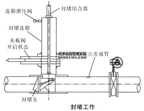 不停輸帶壓封堵為保證管道正常生產,不間斷運行,及時處理泄漏事故、管線維修及改造施工時可采用不停輸帶壓封堵施工工藝。不停輸封堵技術是采用機械封堵頭將需要改造管段兩端隔斷,使輸送介質通過旁通管線輸送,然后對中間管段進行改造施工,在不影響管線內介質輸送的同時對管線進行施工的目的。